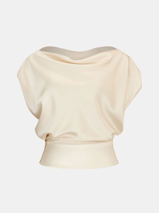 Satin Draped High Neck Blouse